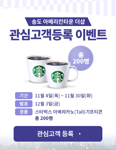 연세대 등 주요 교육기관, R&D센터 등이 밀집된송도국제도시 내 송도국제화 복합단지에 위치하여현대프리미엄아울렛, 트리플 스트리트 등의 개발호재와지하철 캠퍼스타운역 등 편리한 교통환경까지 갖추고 있습니다