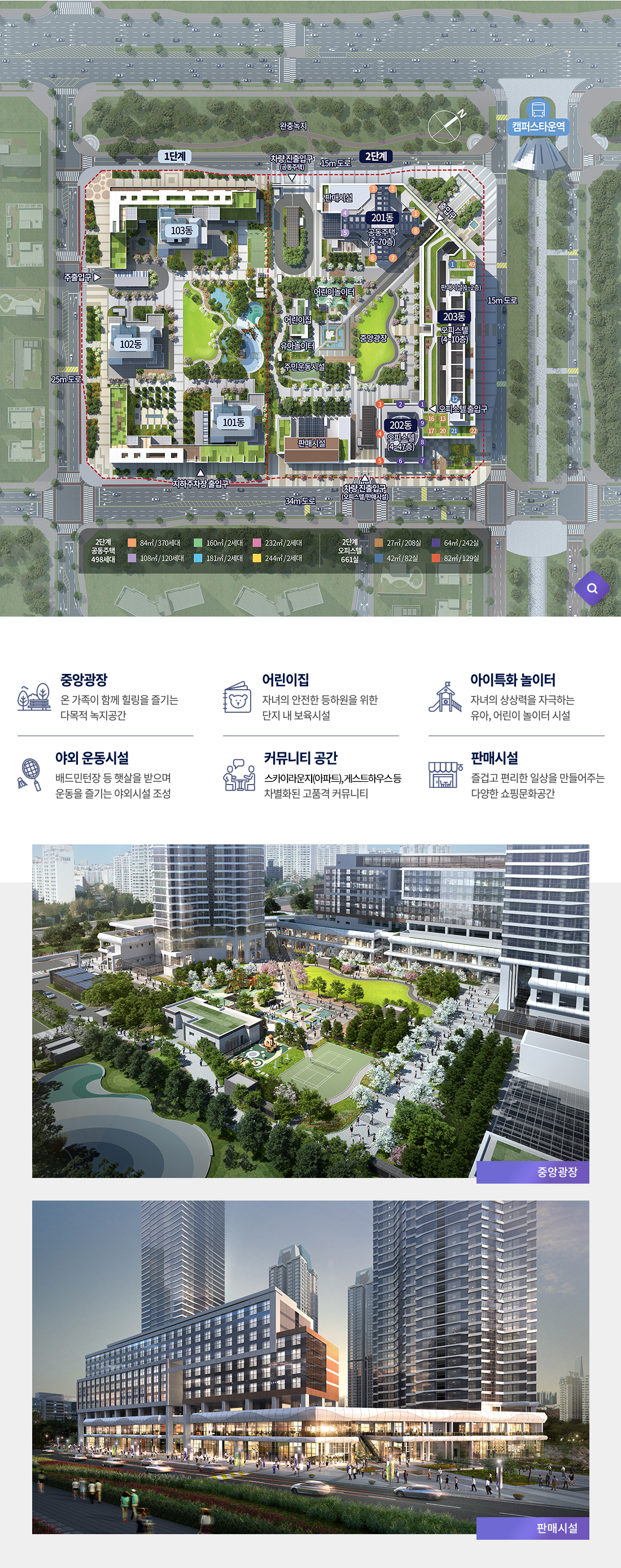 ※ 본 홈페이지의 단지 배치도는 소비자의 이해를 돕기 위해 제작된G C로 실제와 차이가 있을 수 있으며, 단지 외부의 계획사항은 향후 관계기관의 인허가에 따라 변경, 지연, 취소 될수 있습니다.